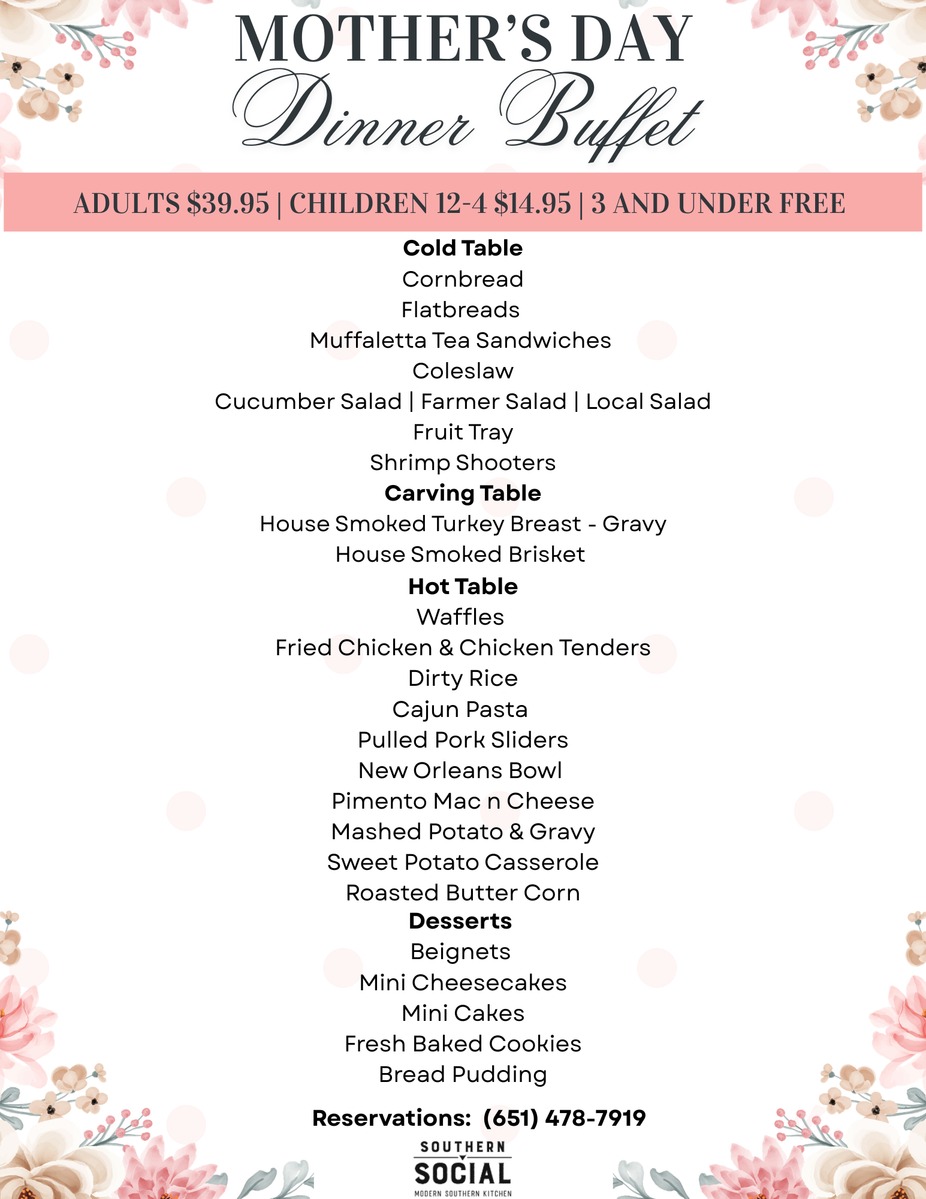 Join us for Mother’s Day Dinner Buffet at Southern Social Eagan!